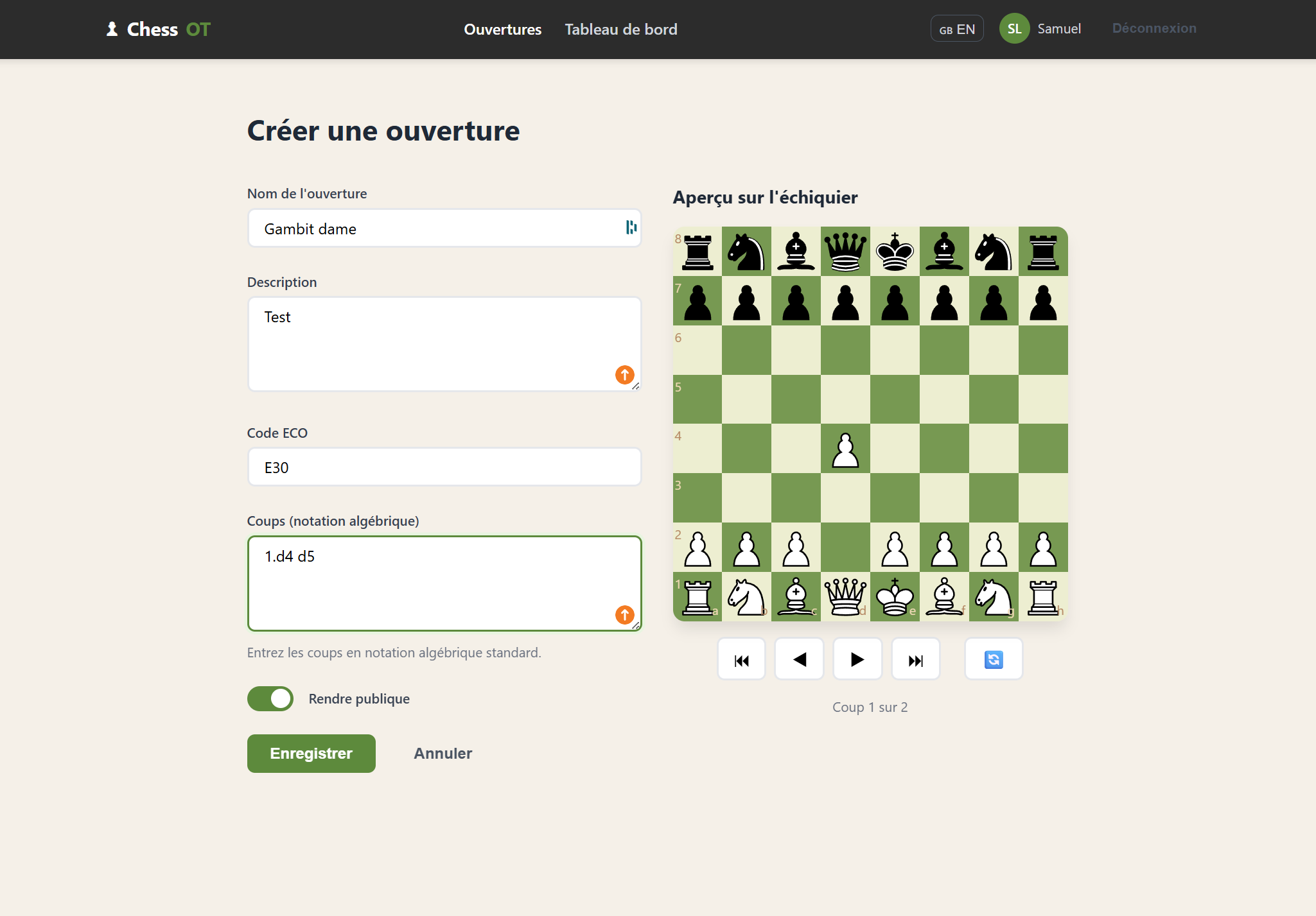 Point intéressant : aucune des deux générations ne propose d’éditer une ouverture en déplaçant directement les pièces sur l’échiquier, fonctionnalité que j’avais pourtant obtenue lors d’une première génération. Cela montre l’importance de la formulation des prompts et du contexte dans lequel l’IA travaille.